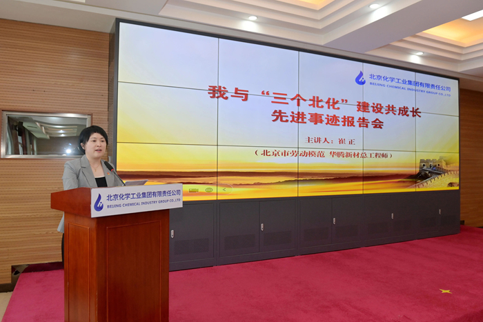 在先進(jìn)事跡報(bào)告環(huán)節(jié),市勞動(dòng)模范,華騰新材總工程師崔正攜《以使命為船,以熱愛(ài)為帆,在時(shí)代洪流中奮勇?tīng)?zhēng)先》;市模范集體代表,試劑所總經(jīng)理助理、質(zhì)量檢驗(yàn)部部長(zhǎng)孟憲冬以《傳承工匠精神,助力“三個(gè)北化”,試劑所質(zhì)量檢驗(yàn)部的奮進(jìn)之路》為題,圍繞個(gè)人成長(zhǎng)、科研開(kāi)發(fā)、團(tuán)隊(duì)建設(shè),自信講述與北京化工共同成長(zhǎng)的點(diǎn)點(diǎn)滴滴。