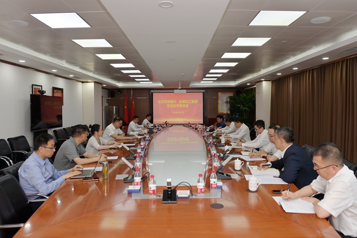 5月17日,北京農(nóng)商銀行行長白曉東一行來到北京化工集團,雙方就如何發(fā)揮各自優(yōu)勢,深入開展銀企合作進行交流座談。北京化工集團黨委書記、董事長陳宇,總會計師金黎明,副總經(jīng)理劉毓及相關(guān)部室負(fù)責(zé)人參加交流座談。