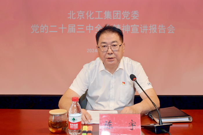 7月31日,北京化工集團黨委召開黨的二十屆三中全會精神宣講報告會,黨委書記、董事長陳宇作宣講報告;7月29日,集團黨委理論學習中心組專題學習黨的二十屆三中全會精神;7月24日,集團黨委常委會集中學習黨的二十屆三中全會精神??焖俣?、多形式,深研學、重實效,北京化工集團黨委深入學習宣傳黨的二十屆三中全會精神,掀起學習宣傳的熱潮。