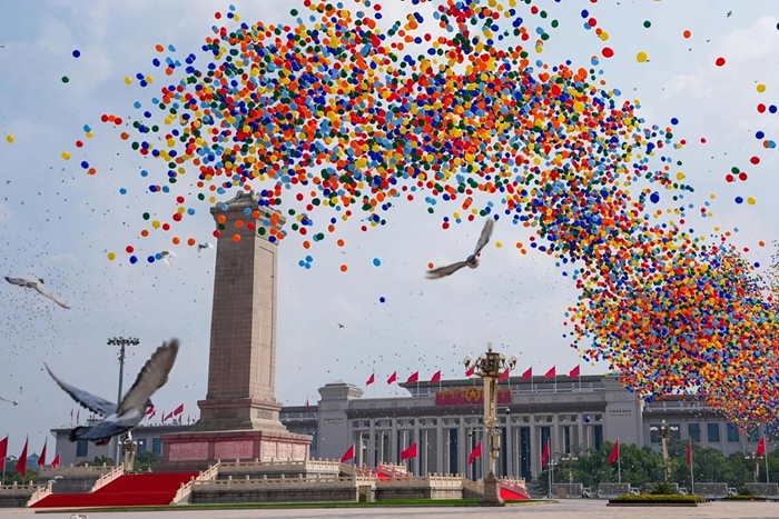 2025年9月3日,天安門廣場(chǎng)騰空而起的8萬支彩色氣球?qū)?ldquo;紀(jì)念中國(guó)人民抗日戰(zhàn)爭(zhēng)暨世界反法西斯戰(zhàn)爭(zhēng)勝利80周年大會(huì)”再次推向高潮……