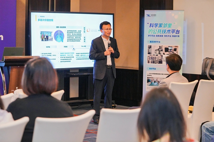 論壇中,北化生科黨總支書記、總經(jīng)理申海成從專業(yè)運營空間、專業(yè)運營團隊和專項產(chǎn)業(yè)基金等多個方面,深度聚焦以核酸藥物為代表的五大細(xì)分賽道,向與會者詮釋“國際生物島”獨有的“1公里科學(xué)家鄰里”生態(tài),并通過高標(biāo)準(zhǔn)技術(shù)平臺、專項基金、技術(shù)審評、專屬空間、高科技人才和公共服務(wù)六大生態(tài)要素協(xié)同,系統(tǒng)闡釋從“0-1-N”的產(chǎn)業(yè)化路徑。