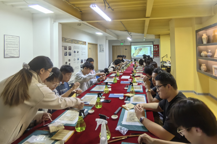 參觀過程中,通過講解員的細(xì)致介紹,師生們不僅欣賞到了連環(huán)畫作品的精湛技藝和獨(dú)特魅力,還深入了解了每幅作品背后的歷史背景和創(chuàng)作故事。大家還在博物館古籍修復(fù)老師的講解和帶領(lǐng)下,開展了非遺古籍修復(fù)研學(xué)課程。此次參觀不僅讓活動(dòng)參與者領(lǐng)略到了連環(huán)畫的藝術(shù)魅力,更激發(fā)了大家的文化自信和民族自豪感。