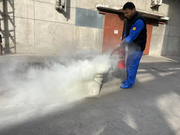 “提、拔、握、壓——對準(zhǔn)火源根部掃射!”在演練現(xiàn)場,安全員手持滅火器,結(jié)合冬季干燥、火情易蔓延的特點(diǎn),向員工講解操作要領(lǐng),強(qiáng)調(diào)冬季滅火器維護(hù)重點(diǎn)。