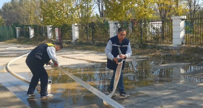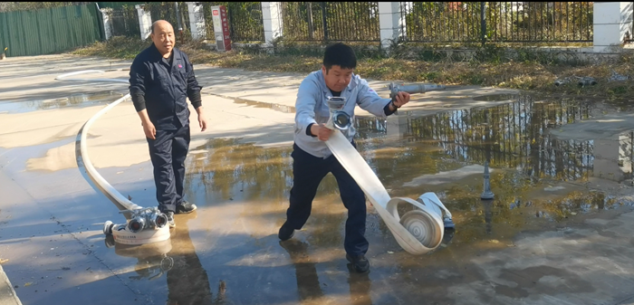 同時,華騰化工還專門組織了消火栓實(shí)操。“先接水帶、再開閥門、最后對準(zhǔn)目標(biāo)出水!”在安全員的指導(dǎo)下,員工兩人一組協(xié)作,快速完成水帶連接、水槍連接等步驟,水柱精準(zhǔn)噴射至指定區(qū)域,整個過程有條不紊。