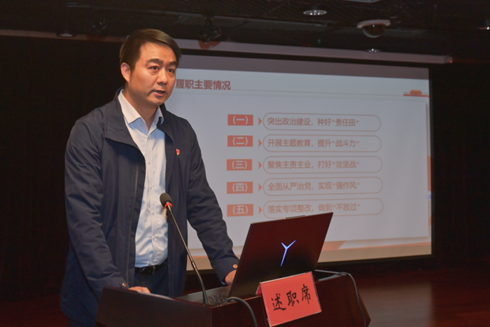 北搪公司、集團總部、華騰東光、華騰冀春和華騰拓展五家單位黨組織書記圍繞落實2023年度基層黨建重點任務(wù),全面總結(jié)工作完成情況,深入剖析存在的問題,并提出2024年度工作計劃。集團黨委常委、紀委書記張中原及黨群部門主要負責(zé)人、二級單位黨組織書記,基層黨員干部代表和群眾代表參加會議并對述職進行考核測評。