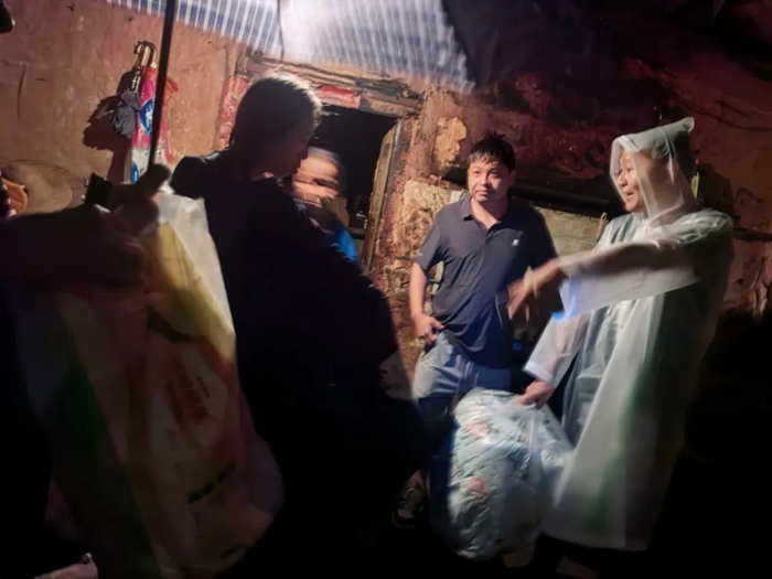 汛情就是命令。面對(duì)突如其來(lái)的洪水,本就日夜堅(jiān)守在村委會(huì)的李東,與村委委員一起連夜趟著洪水,去多戶村民家中查看水位和房屋漏雨情況,在冒雨拉網(wǎng)式檢查中,李東和村委委員先后將2戶有安全隱患房屋內(nèi)的6名村民,連夜轉(zhuǎn)移至村委會(huì)臨時(shí)安置點(diǎn)。當(dāng)大家要喘口氣歇歇腳兒時(shí),28日凌晨3時(shí)許得到消息,位于村口的小商店出現(xiàn)險(xiǎn)情,60多歲的老兩口被困店內(nèi)。接到消息,李東和村委委員緊急出發(fā)。由于洪水流速非???,他們小心翼翼地扶著墻體前行。在到達(dá)商店后,此時(shí)洪水已經(jīng)淹沒(méi)房屋門檻灌入店內(nèi)。面對(duì)緊急情況,李東和村委會(huì)干部們?nèi)饩缺焕Ю先恕@顤|在前面小心探路,另外兩人護(hù)住老人,在大雨中最終將兩位老人撤離到安全地帶。