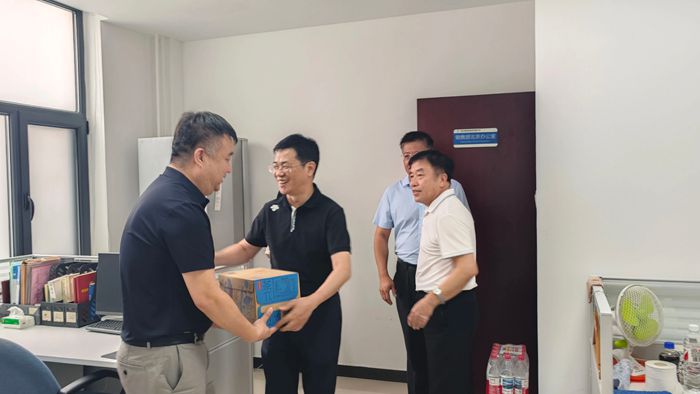 7月9日下午,北京化工集團(tuán)黨委書記、董事長(zhǎng)陳宇,黨委副書記吳瑞峰,黨委常委、副總經(jīng)理韓寶海,黨委常委、紀(jì)委書記常延輝來到華騰橡塑,進(jìn)車間、到班組,親手將一份份清涼飲品送到一線職工手中。慰問過程中,陳宇詳細(xì)了解一線職工工作生活情況,對(duì)大家冒著高溫酷暑,以高度的責(zé)任感和飽滿的工作熱情堅(jiān)守一線給予充分肯定。陳宇叮囑大家既要高質(zhì)量完成好本職工作,又要時(shí)刻關(guān)注身心健康,集團(tuán)各級(jí)黨組織和工會(huì)組織要從各方面確保防暑降溫工作落到實(shí)處,保證干部職工健康安全。