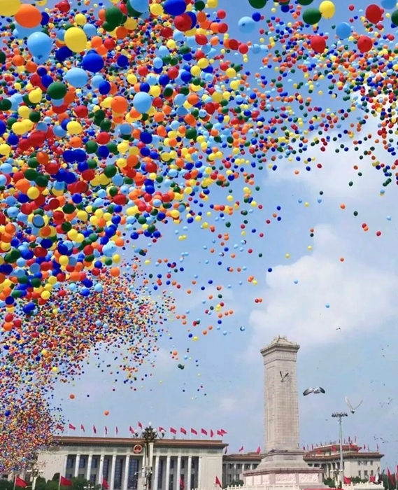 9月3日,紀(jì)念中國(guó)人民抗日戰(zhàn)爭(zhēng)暨世界反法西斯戰(zhàn)爭(zhēng)勝利80周年大會(huì)在北京天安門廣場(chǎng)隆重舉行。當(dāng)人們沉浸在雄渾威武的解放軍受閱部隊(duì)和滾滾鐵流中時(shí),騰空而起的8萬(wàn)支彩色氣球,伴隨著翱翔的和平鴿,將天安門廣場(chǎng)上空渲染得五彩繽紛、銳氣祥和,瞬間將紀(jì)念大會(huì)再次推向高潮。