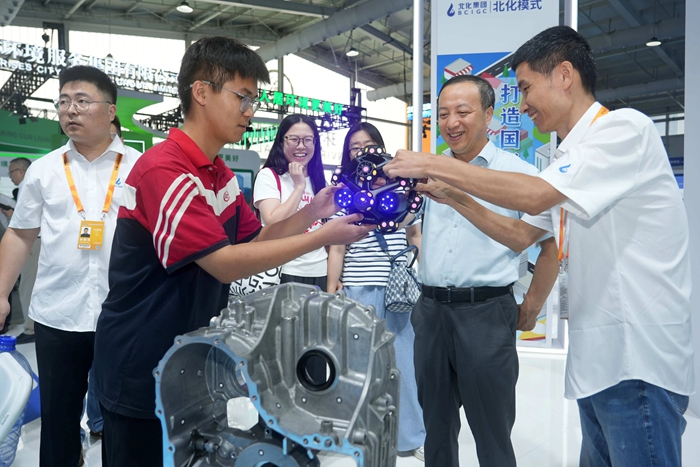 致力于職業(yè)技能人才培養(yǎng)的技師學(xué)院,在互動中呈現(xiàn)世界技能大賽金牌項(xiàng)目——機(jī)電一體化的卓越成果,學(xué)院以人機(jī)互聯(lián)的3D掃描和工業(yè)機(jī)器人吸引了大批參觀者駐足,讓觀眾近距離感受產(chǎn)教融合的創(chuàng)新實(shí)踐和“化工+教育”的協(xié)同價值。